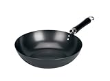Heat-resistant riveted stick handle with hanging ring.Durable Xylan nonstick coating provides easy food release and cleanup.High bowl shape maximizes cooking area; flat bottom suits all range types.12-Inch stir-fry pan for healthy Asian-style cooking.Heavyweight black carbon steel for quick, even heating and superior heat retention. Treat the family to an exotic Asian-style meal or whip up a colorful veggie side dish with this versatile 12-inch stir-fry pan. A member of Keilen's China Village series, the heavyweight vessel is made of black carbon steel for quick, even heating and superior temperature retention. The high-sided round shape maximizes space to give all food equal surface time, so chefs have optimal control to perfectly soften garlic and thoroughly cook meat. For easy food release and cleanup, the pan also features a durable Xylan nonstick coating. The flat-bottomed pan sits securely on any range, including induction styles, and offers a stay-cool riveted stick handle for a cool, comfortable grip. A metal end ring allows for hanging on a pot rack nearby-a nice convenience since this pan is likely to be in high rotation.